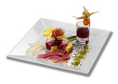 Use a scoop to carve small balls from the melon and kiwi fruit. Thread the following onto skewers, alternating them: one melon ball, a slice of fanned out prosciutto, and one kiwi ball. Repeat along the length of the skewer.