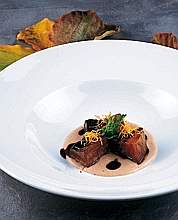Pour into individual dishes two tablespoons of cream of chestnuts, dispose yourself head over a few cubes, seasoning with a tablespoon of its juice, and serve.