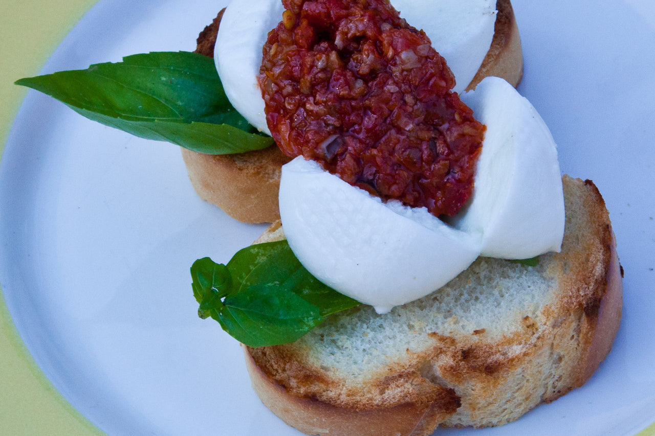 INGREDIENTS: Crostini Ciliegine di Bufala in Bomba Calabrese PREPARATION: Crostini Ciliegine di Bufala in Bomba...