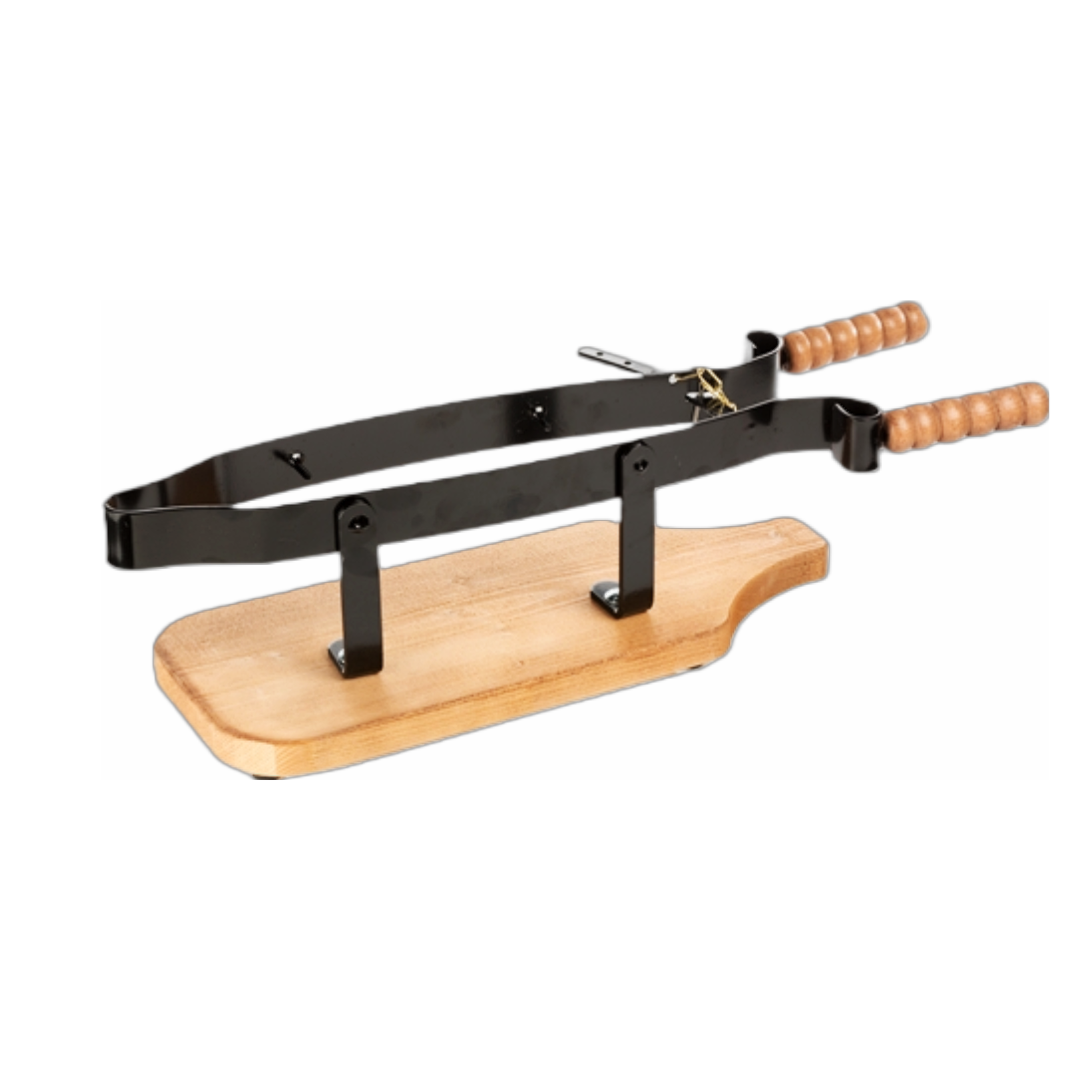 Ham vise with stainless steel claw and wooden board. Ideal to perfectly slice Bone-In Prosciutto, maintaining its unique characteristics.