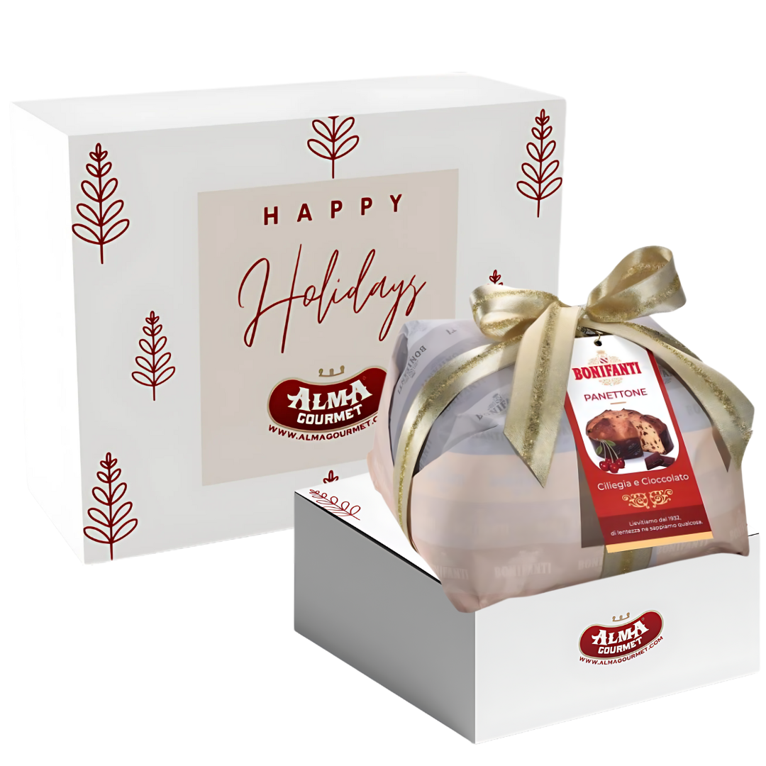 Bonifanti Cherries & Dark Chocolate Panettone Holiday Gift Box - 2.2lb (1kg)