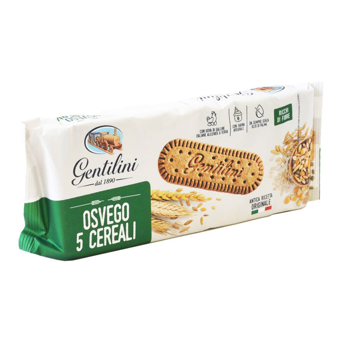 Osvego 5 cereali are the ideal biscuits for a natural and healthy breakfast without giving up the joy of a pleasant wake-up. Thanks to the precious virtues of five different flours: wholewheat, barley, rye, corn and oat, these excellent biscuits guarantee a balanced intake of fibres and important nutrients for our body. Osvego 5 cereali are made with the passion handed down from generation to generation ensuring taste and harmony in every bite.