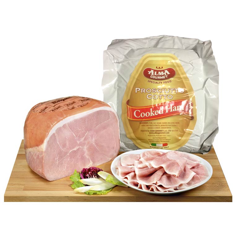 HISTORY: The origins of Prosciutto Cotto Ham Alma are very old: to tell the story, the Romans were the first to cook this meat from the ham's thigh. The process was boiling with the addition of dried figs and bay leaves and then the whole was covered with honey before being cooked in a crust. It is probable that the legionaries have learned from the Gauls, the Lombards or other barbarian populations gradually absorbed by the empire the first notions of the preparation of cooked ham; it is no coincidence that the regions producing the best qualities of cooked ham (by tradition) are: Friuli Venezia Giulia, Lombardy, Piedmont, Liguria, and Emilia-Romagna.