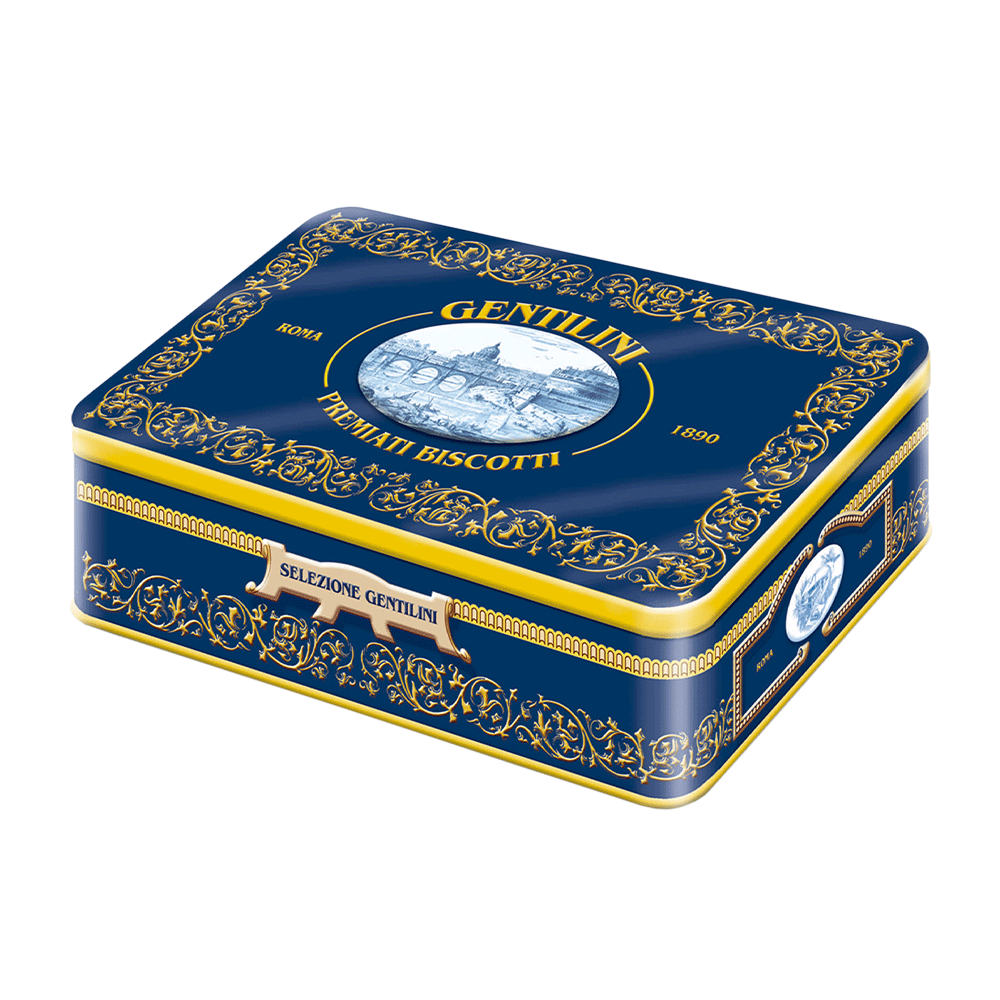 Inside, you'll find a selection of exquisite cocoa-flavored Brasil shortbreads, a masterpiece of indulgence meant to be savored slowly. Crafted from simple and natural ingredients, these biscuits reflect Gentilini's longstanding tradition of quality and taste preservation. The design of these biscuit tins draws inspiration from historic practices where tins were used to protect biscuits during transport and preserve their aroma. With its retro style and historical significance, this refined biscuit tin symbolizes Gentilini's expertise in tin craftsmanship, making it a timeless addition to any home.