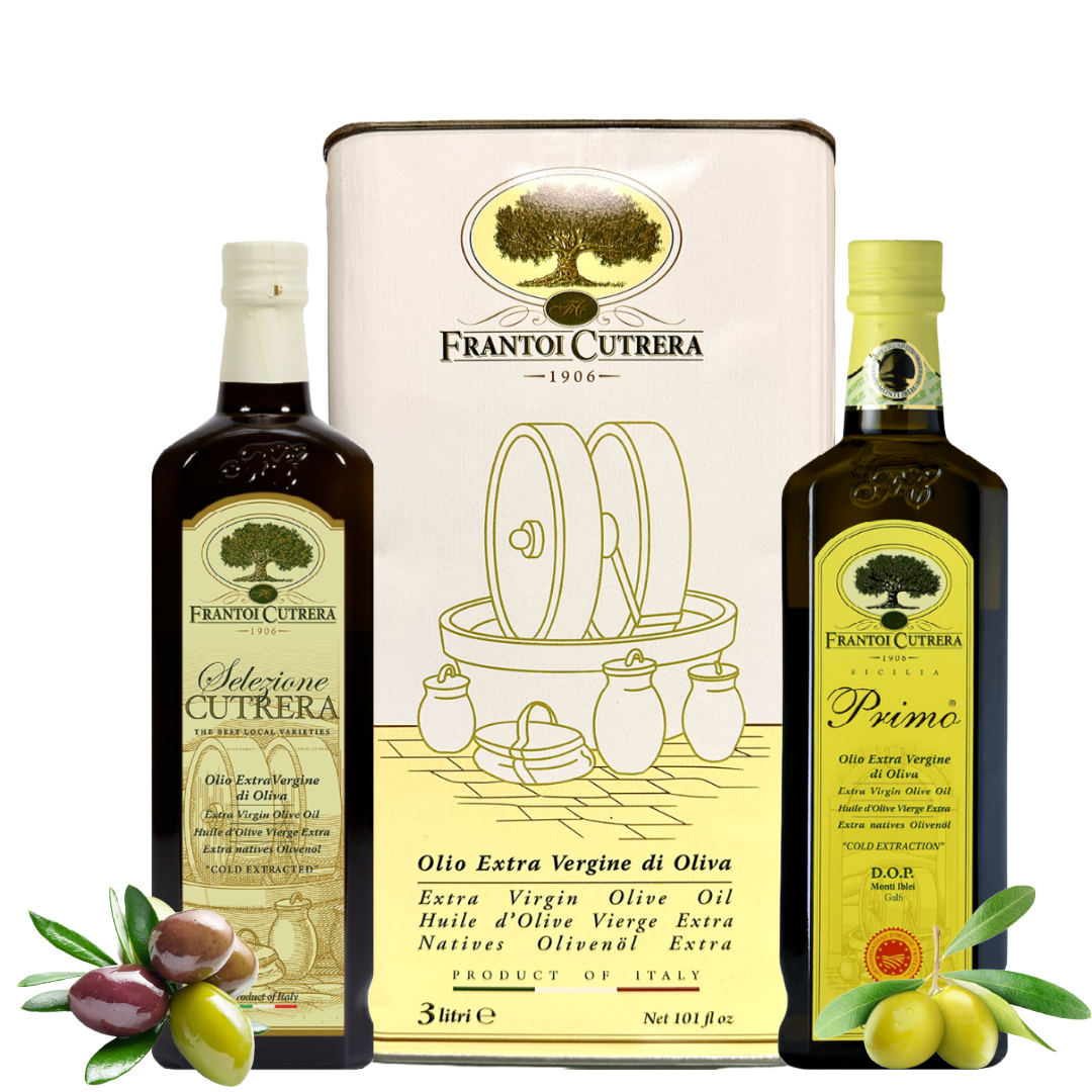 Enjoy the flavors of the Sicilian land with this unique combination of Sicilian Extra Virgin Olive Oils and let Frantoi Cutrera Experience transport you to Sicily. Frantoi Cutrera Experience includes:
