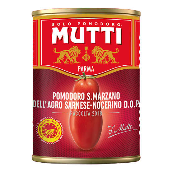 Mutti Whole Peeled San Marzano Tomatoes are grown in the Italian Agro Sarnese Nocerino region, between Naples and Salerno. They have “PDO” or Protected Designation of Origin Status, featuring the official seal of the consortium. These deliciously sun-ripened fleshy tomatoes are a vibrant red color, have a dense texture, and maintain a slightly acidic flavor from the volcanic soil in which they are grown. They are preserved quickly and packed in their own juice to retain their fresh and unique taste.