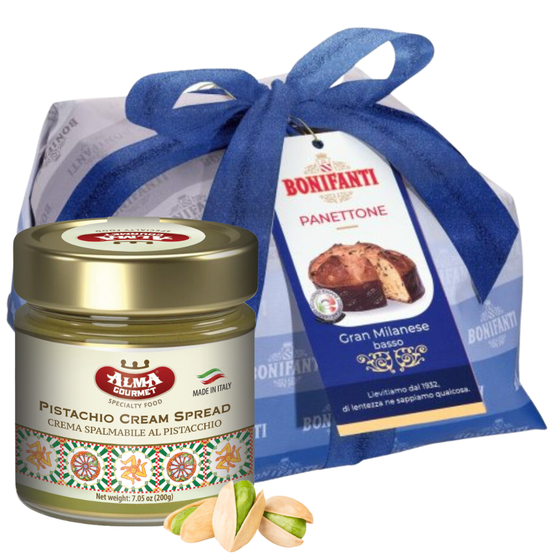 Bonifanti Italian Panettone Classico & Alma Gourmet Spreadable Pistachio Cream (190g) to Fill