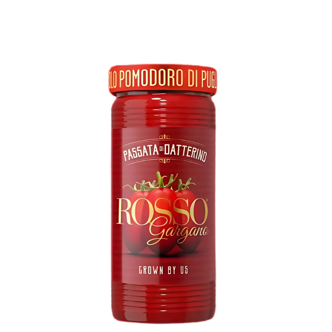 Rich, velvety, and naturally sweet - Rosso Gargano Datterino Passata Tomato Puree is a traditional Italian sauce base with a gourmet twist. Made from 100% datterino passata tomatoes, known for their fine texture and exceptional sweetness, this puree offers a dense, smooth consistency that's ideal for quick-cooking sauces and pasta dishes that need a sauce to cling beautifully.