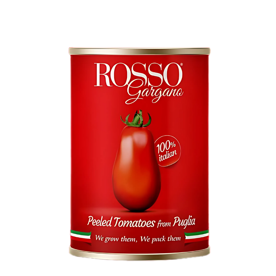 Celebrate the pure, unadulterated flavor of tradition with Rosso Gargano Peeled Tomatoes from Puglia. Firm and fleshy, these whole peeled tomatoes embody the essence of Italian cuisine, offering unmatched texture and fullness to elevate your recipes. Whether used whole or crushed, they are the perfect choice for those who appreciate the natural beauty of tomatoes as they are.