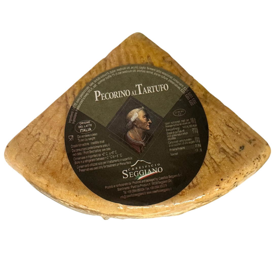 Indulge in the distinctive flavor of Pecorino Truffle Cheese, a semi-soft Italian cheese crafted from pasteurized sheep’s milk and infused with premium black truffles. This delicacy is aged for 30 days to develop a buttery, nutty flavor enriched with earthy truffle notes. The compact, crumbly texture and aromatic profile make it a standout on any cheese board.
