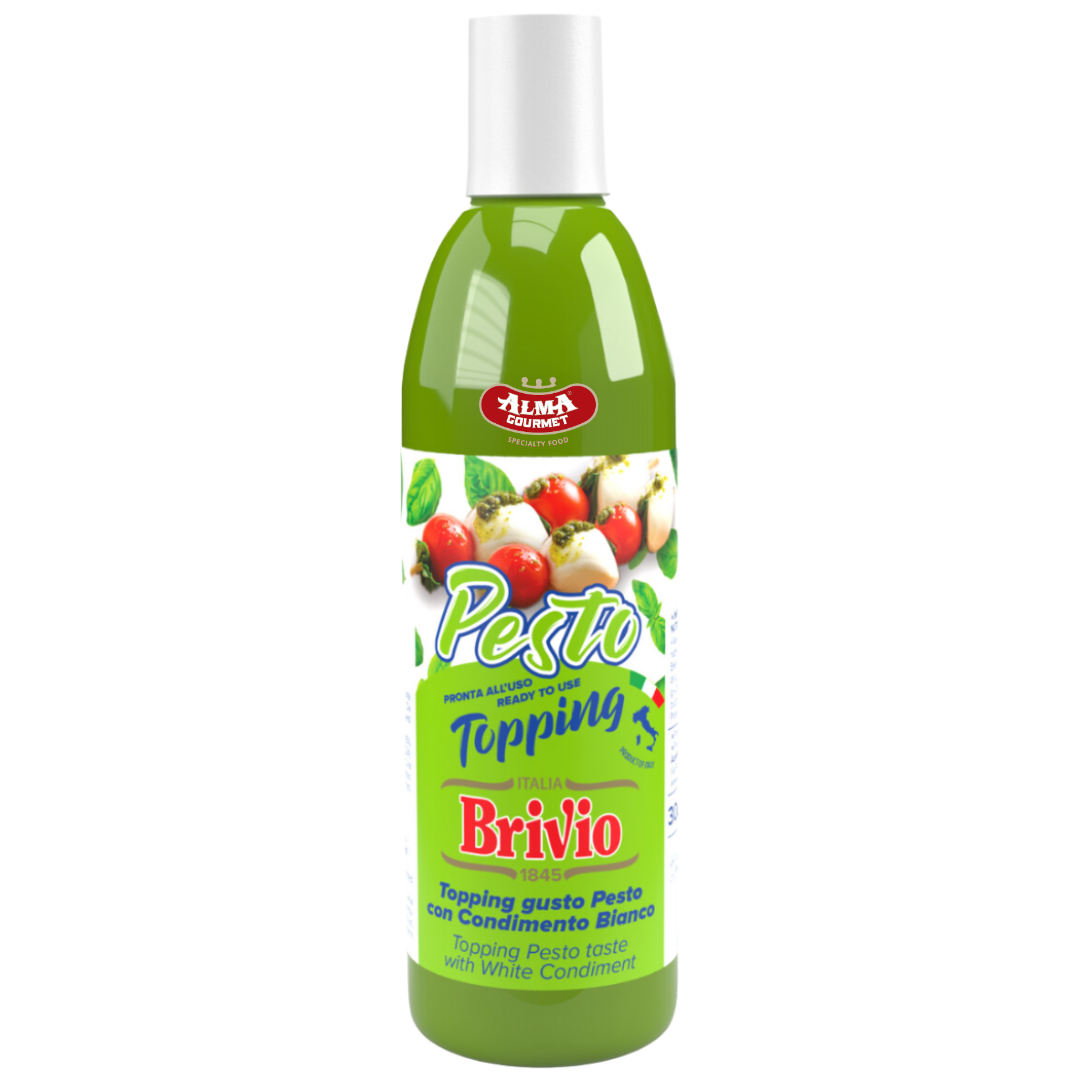 Brivio Pesto Topping is ideal to enhance the flavor of bruschetta, sandwiches, salads and pizza and doesn’t need to be cooked or heated. Spread a generous amount on slices of crusty bread and add fresh tomatoes and mozzarella, or enrich your salads with a fruity and juicy touch.