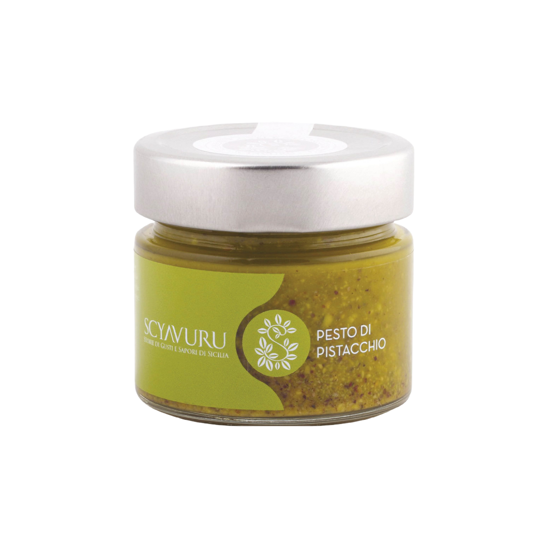 Between the land and the sea, following the Sicilian tradition, Scyavuru produces its pesto sauces following the most ancient techniques, without using preservatives or coloring agents. Scyavuru Pistachio Pesto is an ideal condiment that will give your dishes all the flavors of the Sicilian land. Made with a selection of the best Sicilian pistachios, this pesto makes an ideal condiment for pasta dishes. Try it with crispy guanciale or with toasted nuts, stracciatella and cherry tomatoes and enjoy this true Sicilian delicacy.