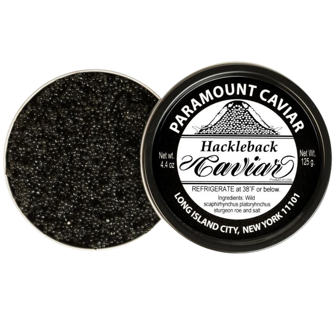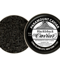 Hackleback caviar, harvested from the world's smallest sturgeon native to the Mississippi & Missouri Rivers, offers small, yet firm, jet black pearls with the classic taste of wild sturgeon. This roe has a wonderful sweet, buttery flavor and looks like velvet. Recently, we have given it the nickname “adult candy” as it is a widely appreciated roe from all gourmands.