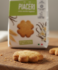 Start your day with pure, simple goodness. Piaceri Biscotti with Vanilla are crafted with 100% Italian wheat and free-range hen eggs, delivering an authentic taste and delightful crunch. Shaped like a charming four-leaf clover, these biscuits are infused with delicate vanilla notes, offering a naturally delicious flavor—without any added sugar.