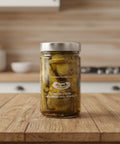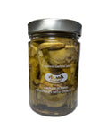 Prepared in the traditional Roman fashion, each artichoke is trimmed from the heart down though keeping the stem intact. These are then enhanced with slightly smoky notes from slow-roasting over hot coals. They are then submerged in the highest quality extra virgin olive oil to further contain the flavor. Only then can one truly enjoy and envelop themself in the deep, rich flavor of our supreme product.