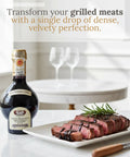 The result is a dense, velvety balsamic with a perfect balance of sweetness and acidity, featuring deep aromatic notes of wood, fruit, and honey. Each drop tells the story of Italian heritage and artisanal mastery.