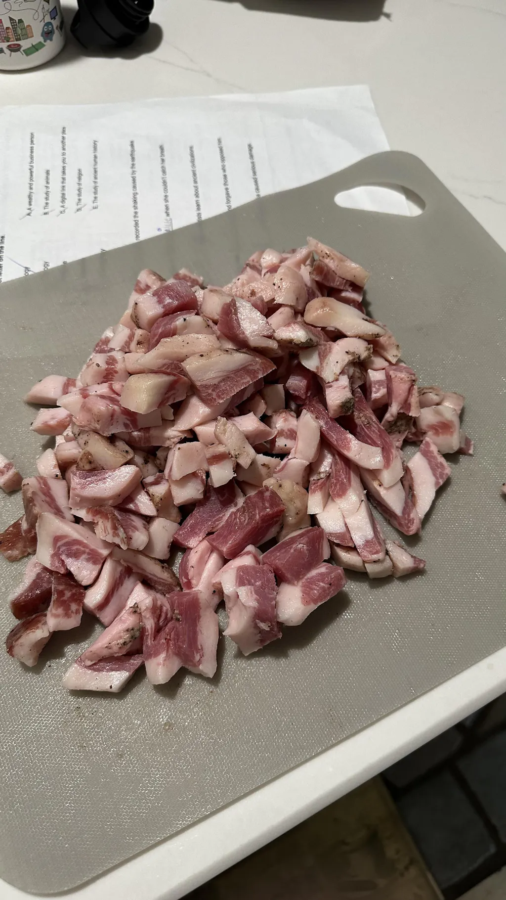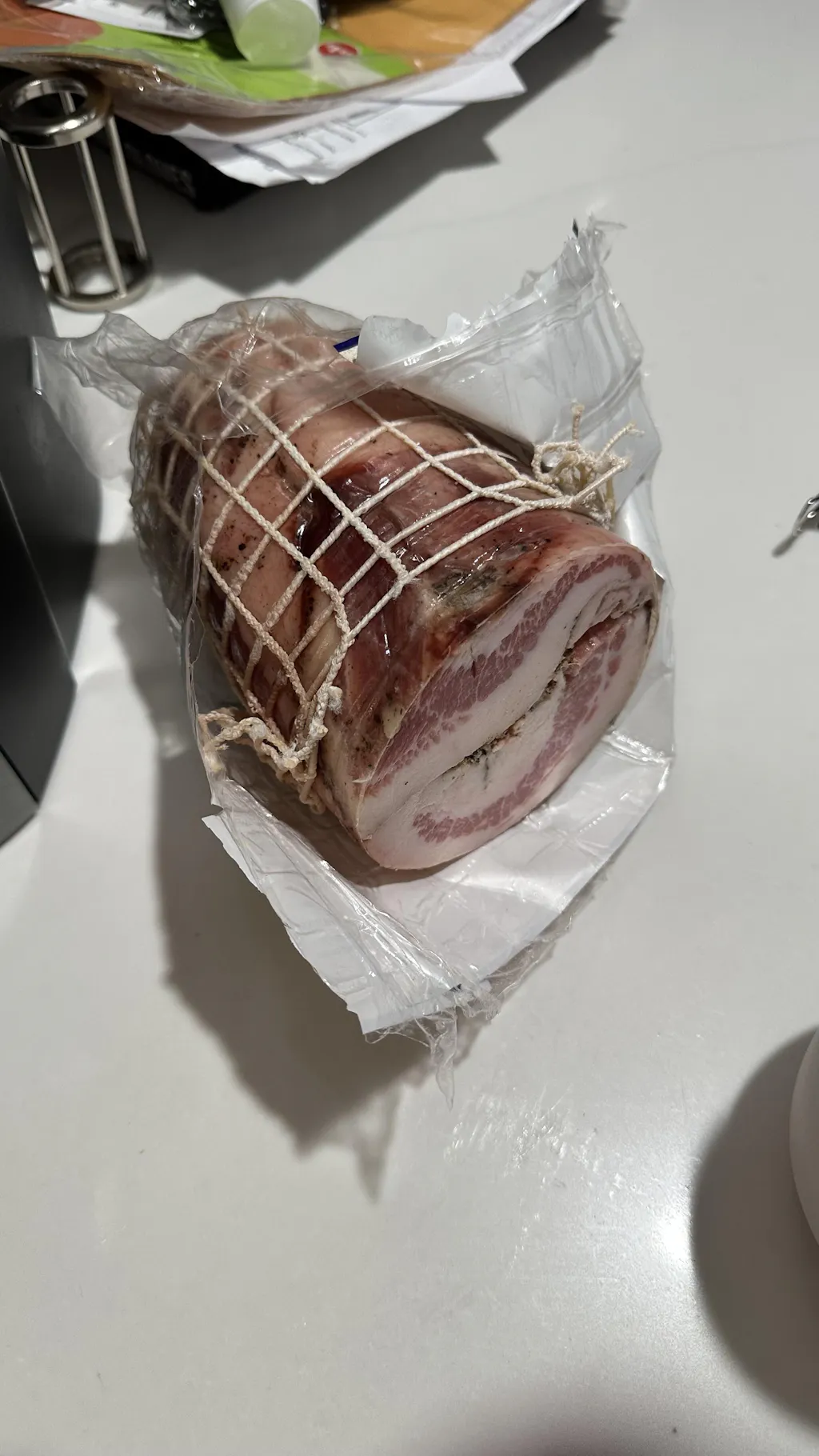 Guanciale is the traditional Italian cured pork jowl prized for its rich flavor and silky texture. The pork cheeks are hand-salted and left to cure for 4–5 days before being rinsed, air-dried, and coated with freshly ground black pepper and a touch of peperoncino. After a minimum of 3 months of slow aging, the meat develops a deep, savory aroma and a melt-in-your-mouth quality that defines Italy’s most iconic dishes.