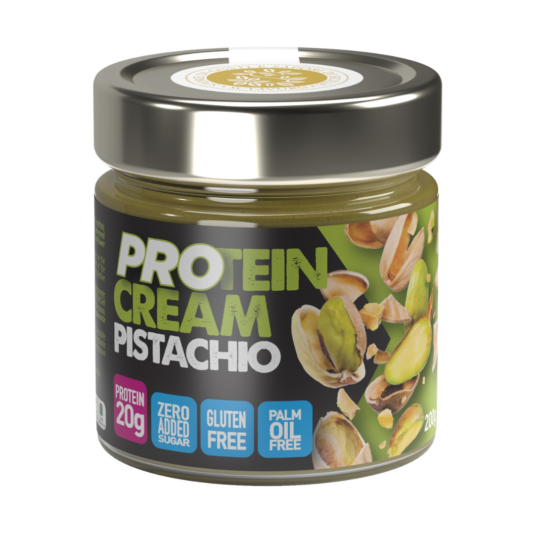 Perfect for anyone aiming to boost their protein intake, this rich and smooth pistachio protein cream combines the natural flavor of pistachios with a high-protein content for a rich and satisfying treat. With its silky, velvety texture, it spreads easily on toast, crackers, or your favorite snacks and makes a delicious addition to your protein oats and yogurt bowls.